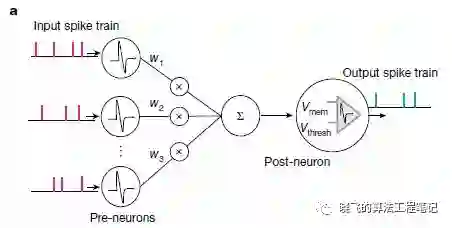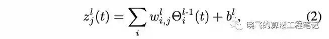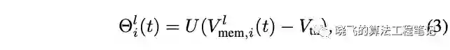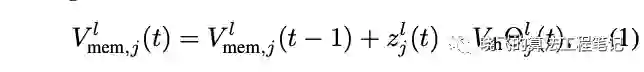 第 层的第 个神经元的膜电压计算如公式1, 为脉冲, 为临界电压, 为神经元的输入