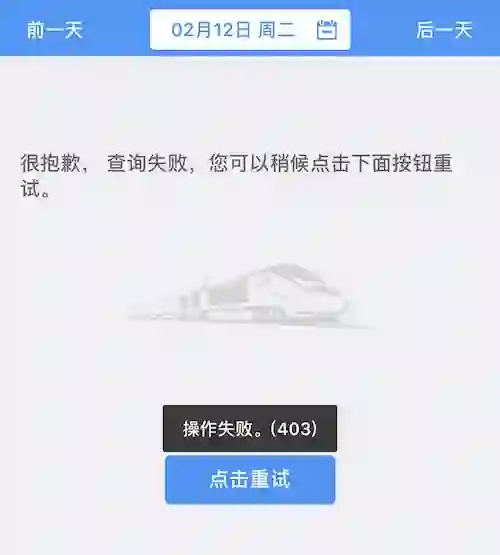 但我们尝试分别用 12306 和抢票软件(飞猪)购票,发现抢票软件的系统稳定性更高。12306 在使用时数次显示“操作失败”,无法显示列车列表;飞猪检索时未出错,预约购票后在第二天早上完成出票。
