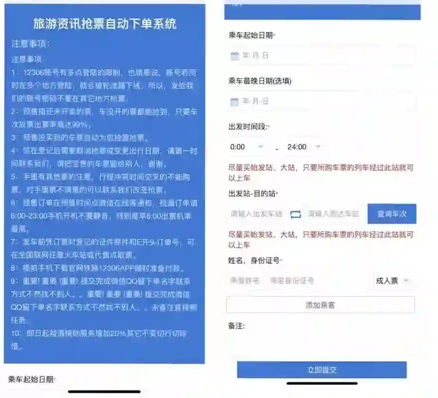 他们的技术与时俱进,抢票原理与第三方购票软件相近。用户把 12306 账号密码交给黄牛,由系统进行捡漏抢票,期间不得用自己账号登陆其他抢票平台,否则很可能因多点登陆被踢下线。