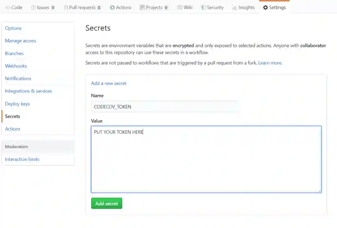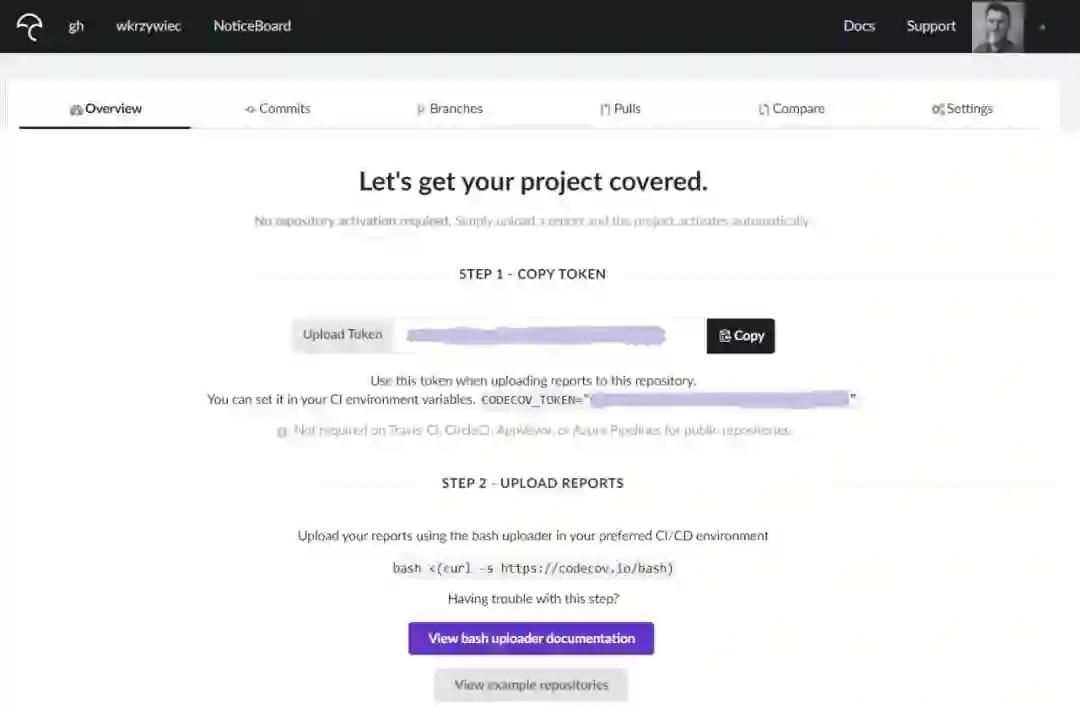 最终,生成的测试覆盖率报告可以上传到Codecov(Upload coverage to Codecov)。在这里我们使用uses: codecov / codecov-action @ v1(https://github.com/marketplace/actions/codecov)。在其中,我们提供3个参数:token: ${{ secrets.CODECOV_TOKEN }},取值自我们放置在GitHub Secrets保管库的文件,(之前的步骤生成的)测试覆盖率报告的位置是file:./coverage.xml,而flags:unittests是对我们的单元测试进行分组的标志。