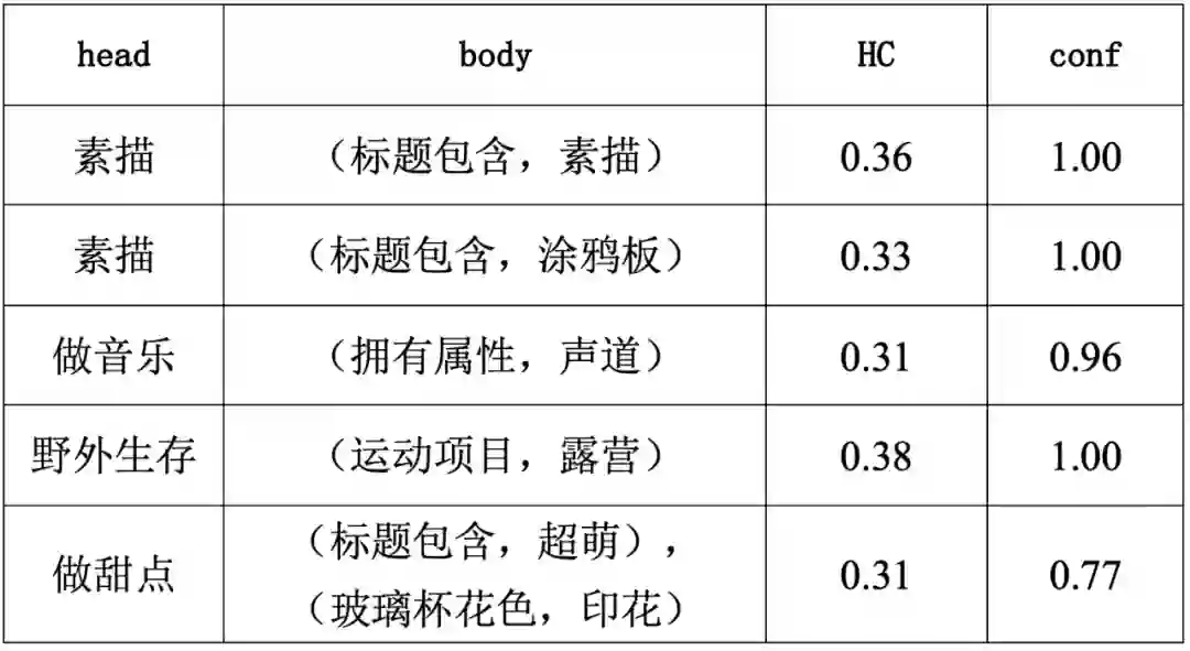 目前业界常用的规则学习baseline是关联规则挖掘,用于发现数据集中项与项之间的关系,通过挖掘数据集中存在的频繁项集来生成规则。这种方法适合数据项之间没有差异的数据集,比如著名的购物篮分析应用中,不同的商品都可以看作是同种item。而在实际应用中常常需要挖掘不同类型数据项之间的规则,数据集中的元素项之间存在差异,不能简单地将所有数据项都看作同种item,分析商品场景挂载数据可以看出,商品的 PV 对与场景之间存在差异,若将其视为同种数据项,用通用的规则挖掘算法学习,就舍弃了商品 PV 对与场景之间的挂载关系信息以及差异。