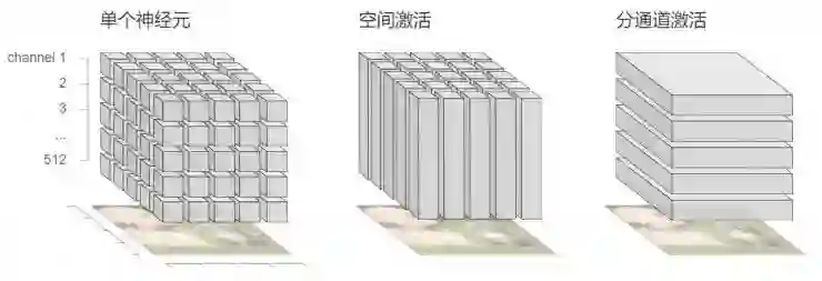 图中用于计算机视觉任务的神经网络的不同的隐含层如何组成了激活值的「立方体」。对立方体的不同分割方法可以把激活值具体到单个神经元、单个空间位置或者单个通道
