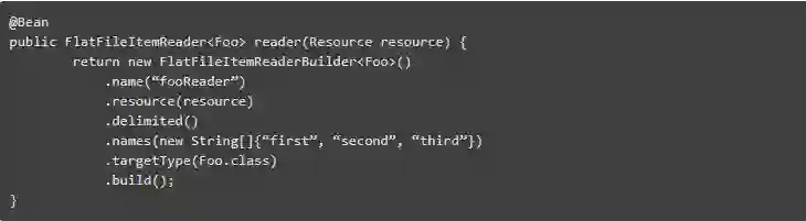 如前所述,Spring Batch 4 是 Spring Boot 发布以来的第一个主要版本。在这个版本中,改善了让用户的 Java 配置体验。所有 ItemReader 和 ItemWriter 实现现在都可以使用构建器。使用 Spring Batch 3 的 Java 配置功能,将需要如下所示: