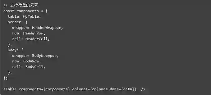 新增 components 属性,用于覆盖表格元素的默认标签。