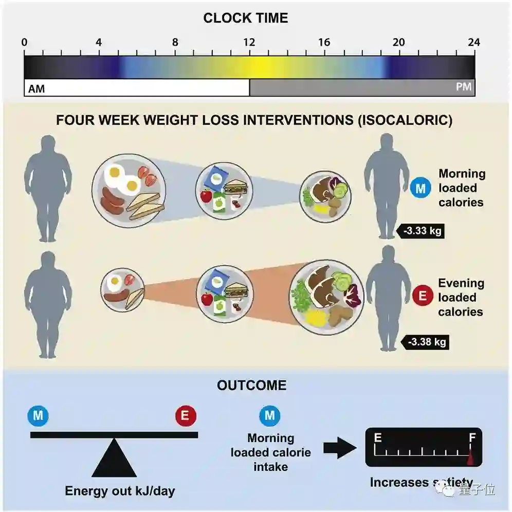 这也意味着,早餐和晚餐的相对份量对新陈代谢并没有显著影响,这也推翻了之前“在一天中不同时间进食会导致不同能量代谢”的说法。