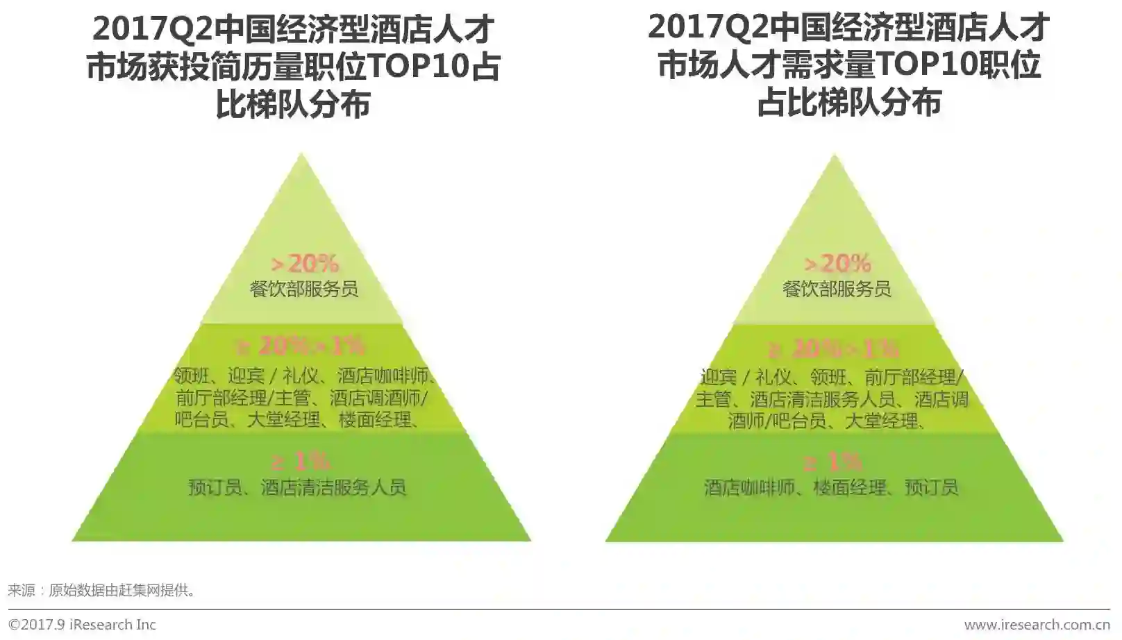2017Q2餐饮部服务员获投简历量和需求量占比均居首位