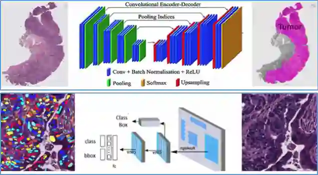 图7)上:识别癌变区域;下:识别分割不同类型的细胞核。