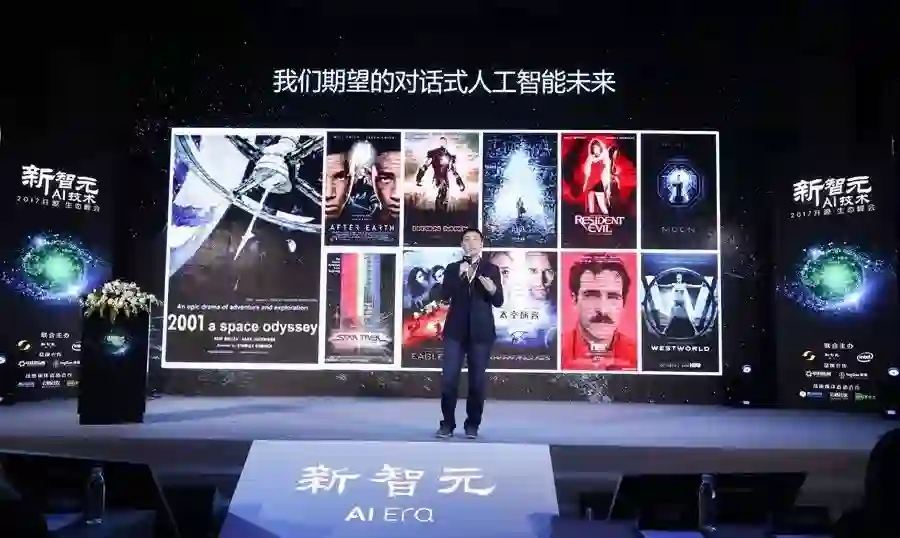 大家可能看过这个叫《HER》的电影,“Her”是一个人工智能,主人公通过一个耳机和一个手机,就能跟Her进行沟通。我今天演讲的主题是“对话式人工智能”。如何定义对话式人工智能?在很多科幻片里我们会看到这样一些对话式人工智能,有时候是机器人,有时候是计算机、耳机,甚至是无处不在的虚拟物质。这是老百姓心目当中的对话式人工智能,我们的愿景也正是研发出这样的对话式人工智能。