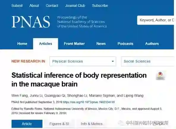 9月3日,《美国科学院院刊》在线发表了题为《猕猴对自我身体表征的统计推理》的研究论文。该研究由中国科学院脑科学与智能技术卓越创新中心(神经科学研究所)、上海脑科学与类脑研究中心、灵长类神经生物学重点实验室王立平研究组完成,博士后方文为该论文第一作者。在该研究中,研究人员利用自主设计搭建的虚拟现实呈现系统,在人类和猕猴被试上建立身体幻觉行为学范式,并在猕猴上对其身体“拥有感” (ownership) 进行定量行为学测量和计算建模。更重要的是,研究人员通过电生理记录的方式,发现了猕猴大脑前运动皮层的群体神经元以贝叶斯因果推断的方式对身体拥有感进行编码。