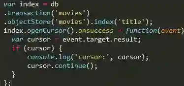 •在索引对象上使用: var cursor = index.openCursor()