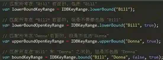 更多请参考 MDN|IDBKeyRange