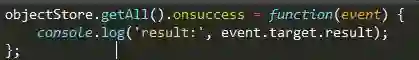 在indexedDB2规范中,在对象存储空间对象上纳入了一个getAll()方法,可以获取所有对象: