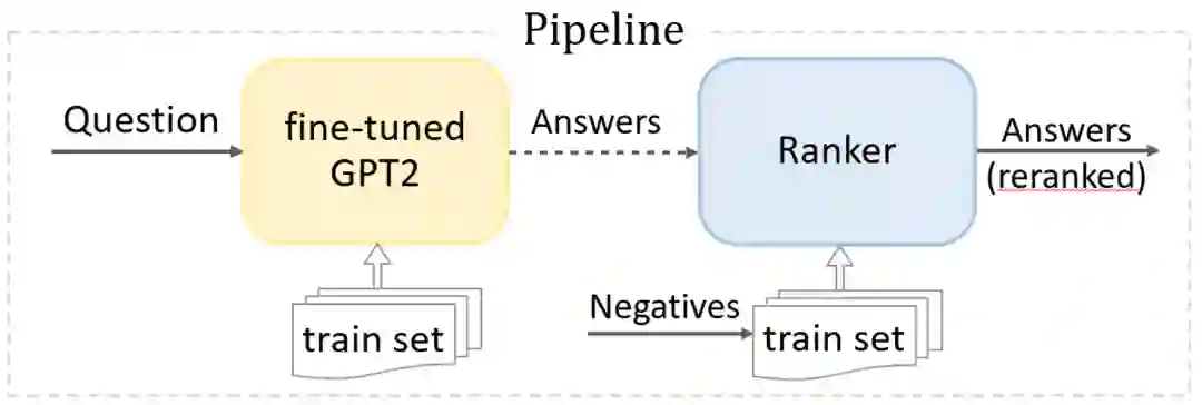 对于该答案生成问题,HITSZ-HLT 研究组使用了先采样后排序的流水线框架(下图 4)。再由掩码模型计算采样结果的典型程度,将该数值经过sigmoid函数转换为是典型答案的概率,最后根据概率值降序输出最终的回答列表。其中,生成模型在数据集上微调,每个答案的权重均为 1;掩码模型学习不同答案的典型程度,具体训练过程如下: