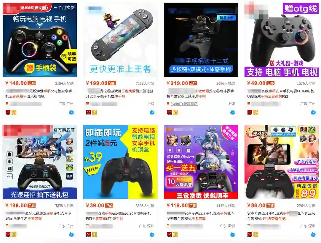 其次,《王者荣耀》的操控并不复杂,非常容易移植为手柄操作。事实上,目前已经有不少为了《王者荣耀》而生的手柄外设了: