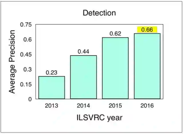 图 5.ILSVRC 的图像目标检测结果(2013-2016),来源 ImageNet. 2016. [Online] Workshop