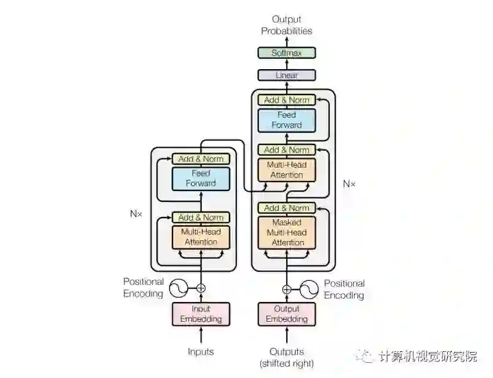 输入:encoder的输出 & 对应i-1位置decoder的输出。所以中间的attention不是self-attention,它的K,V来自encoder,Q来自上一位置decoder的输出