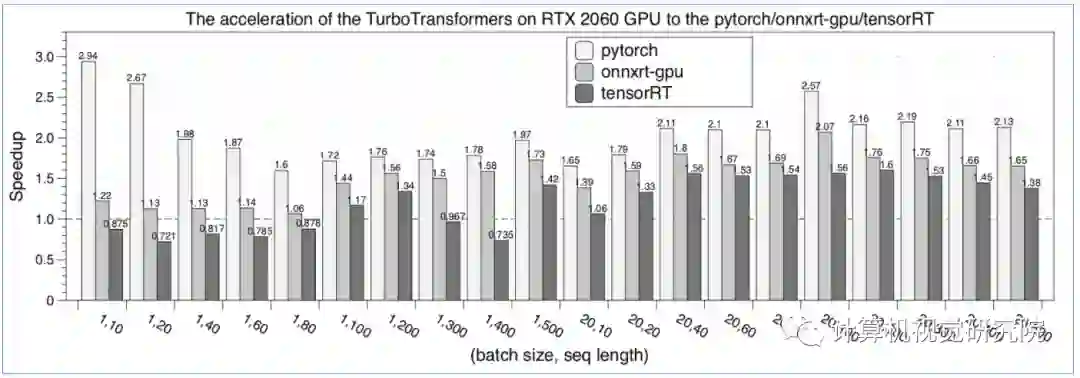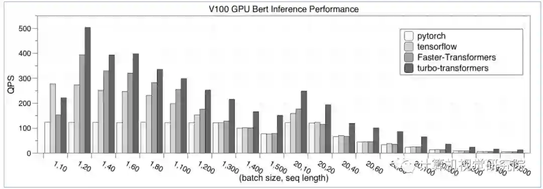 由于 NLP 的采用变长输入特性,每次运算中间结果的大小其实并不相同,为了避免每次都分配释放内存,TurboTransformers 通过 Caching 方式管理显存。