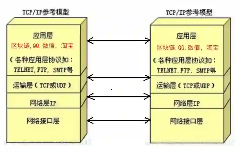 理解TCP/IP协议对掌握互联网和区块链有非常重要的意义,在1974年TCP/IP发明之后,整个互联网在底层的硬件设备之间,中间的网络协议和网络地址之间一直比较稳定,但在顶层应用层不断涌现层出不穷的创新应用,这包括新闻,电子商务,社交网络,QQ,微信,也包括区块链技术。