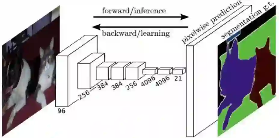 在 FCN 中,语义分割问题被转化成一个密集的逐像素分类问题,通过投射来实现。换句话说,每个像素都与 softmax 层关联,通过像素逐类分组来实现图像的语义分割。更值得注意的是,在这项工作中对较低结构层的特征适用上采样操作,起着至关重要作用。