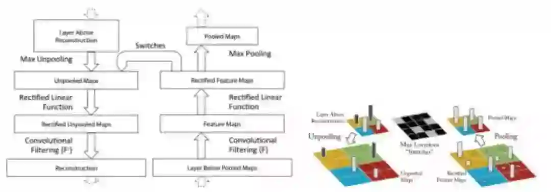 卷积可视化的第一种方法是以数据集为中心的方法,因为卷积操作依靠从数据集输入来探测网络在网络中找到最大响应单元。这种方法的第一个应用是反卷积(DeConvNet)。其中可视化是分两步实现: