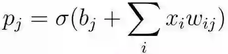 首先,对于图像中的每个像素,对 xi 及初始化的 wij、偏置 bj、隐藏层状态 hj,其概率可以被定义为: