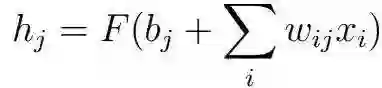 wij 是权重值,用于控制输入单位和隐藏单位之间连接的强度,bj 是隐藏单位的偏置,F 是非线性函数,如 Sigmoid 函数。