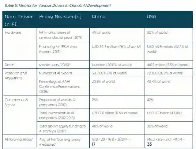 报告据此得出结论,称中国硬件水平远不及美国,已经成为人工智能发展的瓶颈。