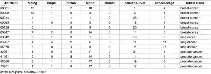 词袋是一种以表格表示数据的方法,其中列表示语料库的总词汇表,每一行表示一个观察。单元格(行和列的交集)表示该特定观察中的列所代表的单词数。 它有助于机器用易于理解的矩阵范式理解句子,从而使各种线性代数运算和其他算法能够应用到数据上,构建预测模型。