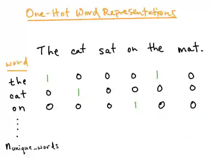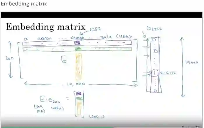 为了将样本转换为其嵌入形式,将独热编码形式中的每个单词乘以嵌入矩阵,从而得到样本的词嵌入形式。