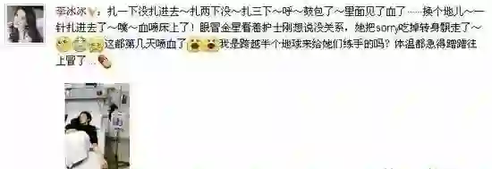 给李冰冰扎针的护士,扎了好几针都没扎准,导致她喷血,还一句道歉都没有。