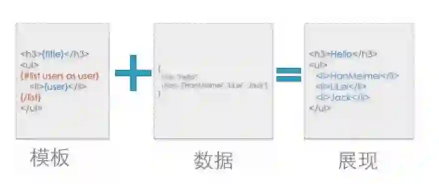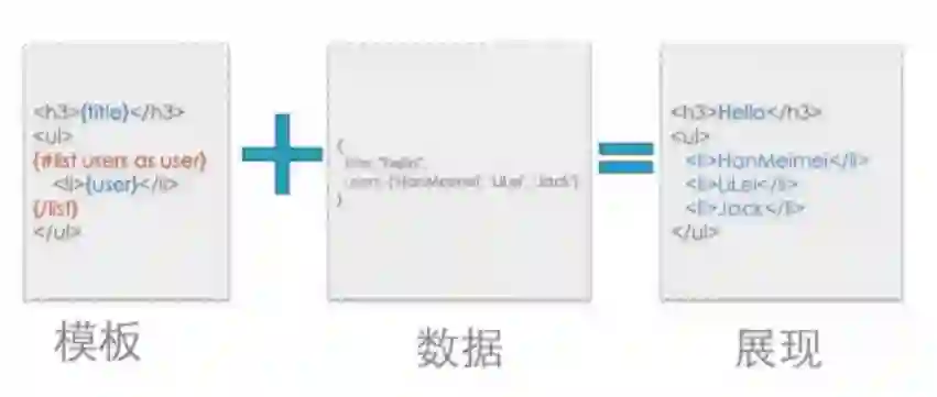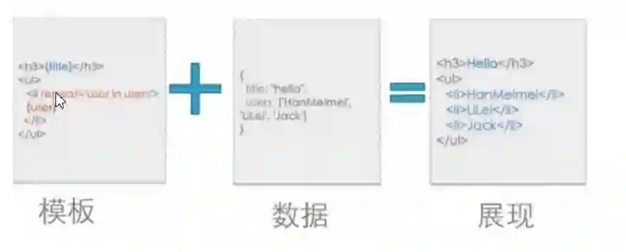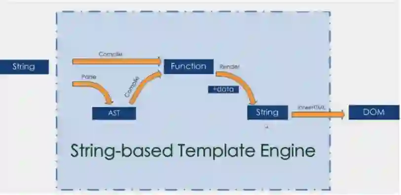 原理如下:输入一段模板字符串,通过编译之后 ,生成一段Function,通过Function的render或类render函数渲染输入的数据data,输出模板字符串,字符串通过innerHTML或类似的方式渲染成最后的DOM结构。这类模板的问题在于通过字符串生成DOM之后就不再变化,如果在改变输入的数据data,需要重新render,重新生成一个全新的DOM结构,性能较差。但该模板可以在服务器端运行