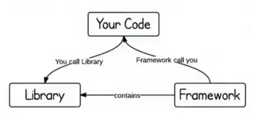由下图所示,框架会在特定的时间要求程序执行某段代码。框架决定了什么时候调用库,决定了什么时候要求代码去执行特定功能