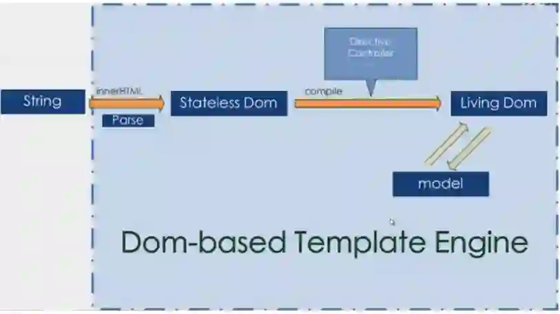 原理如下:将输入的字符串模板通过innerHTML转换为一个无状态DOM树,然后遍历该节点树,去抓取关键属性或语句,来进行相关的绑定,进而变成了有状态的DOM树,最终导致DOM树会与数据模型model进行绑定。这类模板的特点是修改数据时,会使有状态的DOM树实时更新,运行时性能更好,也会保留 DOM 中的已有事件