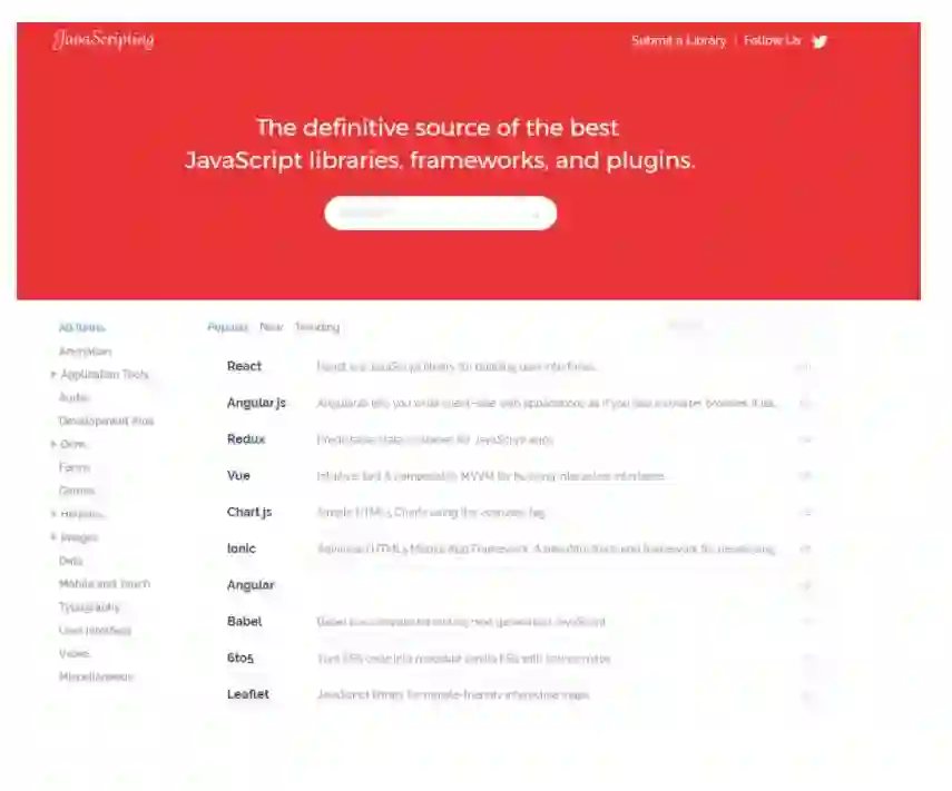 最后推荐一个框架选型网站https://www.javascripting.com,该网站根据不同的需求的选择,给出当下流行的框架选型