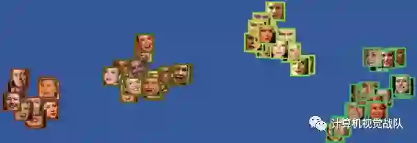 就如上图所示,同一类的人脸,其特征特别相似,不在同一个聚类簇中的人脸,其特征差别较大,这样对人脸识别有较大的提高。