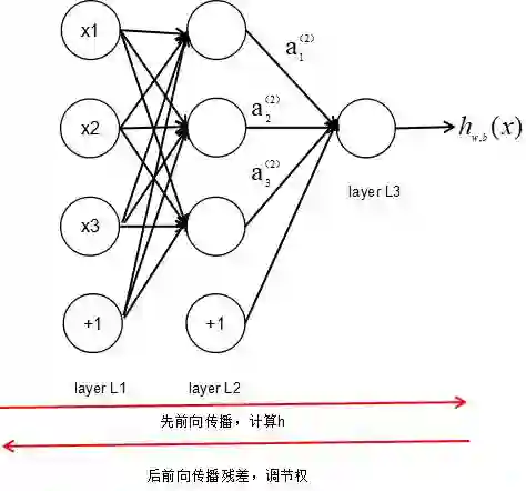 在2.1阐述的神经网络概念在上世纪80年代就已出现,当时人们使用的神经网络训练算法称为反向传播算法(BP算法),它定义了一个损失函数来优化每层神经元的权重参数。损失函数是描述实际输出与预期输出差别的函数,应用链式求导法则可以求出每层权重参数的偏导数。反向传播算法工作过程有三个步骤: