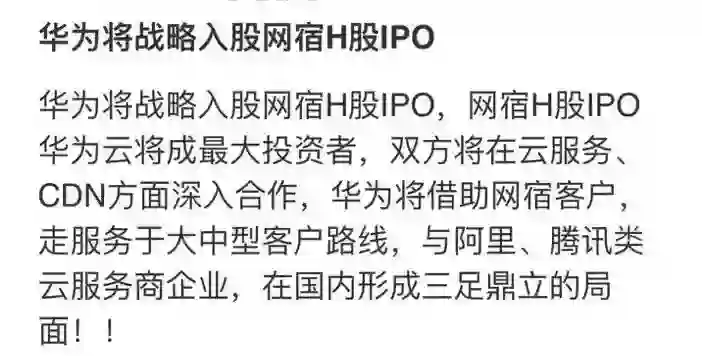 之前也曾传闻华为入股网宿科技,目前未落实。