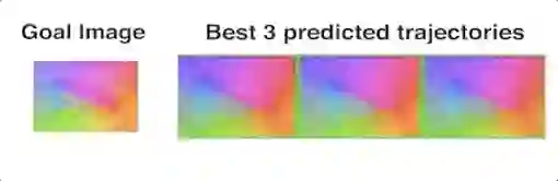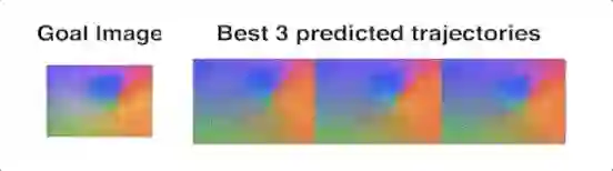 在触觉 MPC 中,如上图所示,在测试时采集了大量的动作序列,本例中为 200 个动作序列,并且由模型预测得到假设轨迹。选择预测最接近目标的轨迹,并且此序列中的第一个动作被机器人在现实世界中采取。为了在模型出现小误差时进行恢复,每一步都重复规划过程中的轨迹。