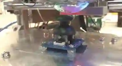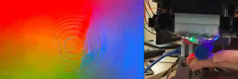 在实验中,我们使用了一个改进的 3 轴数控路由器,在路由器的末端执行器上安装了一个面朝下的触觉传感器。机器人通过改变传感器相对于其工作阶段的 X、Y 和 Z 位置来移动,每个轴由一个单独的步进电机驱动。由于这些电机可以精确控制,我们的设置可以达到约 0.04 毫米的分辨率,有助于在精细的操作任务中细致地移动。