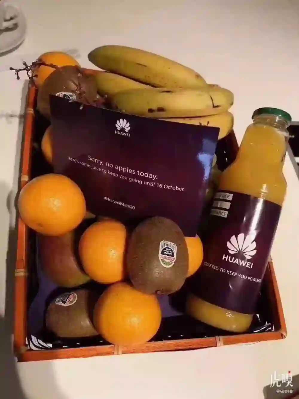华为:是的,10月16日前,每天都送果汁和水果。不过今天不好意思,没有苹果。