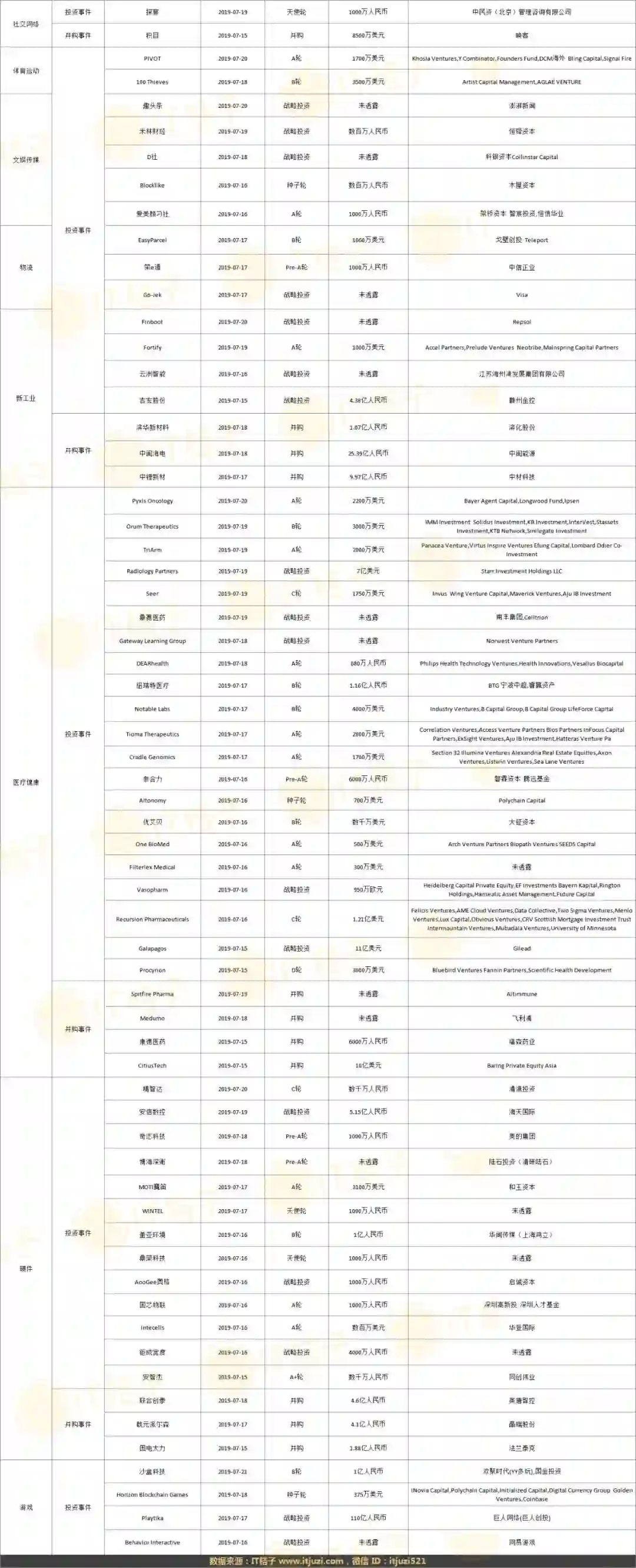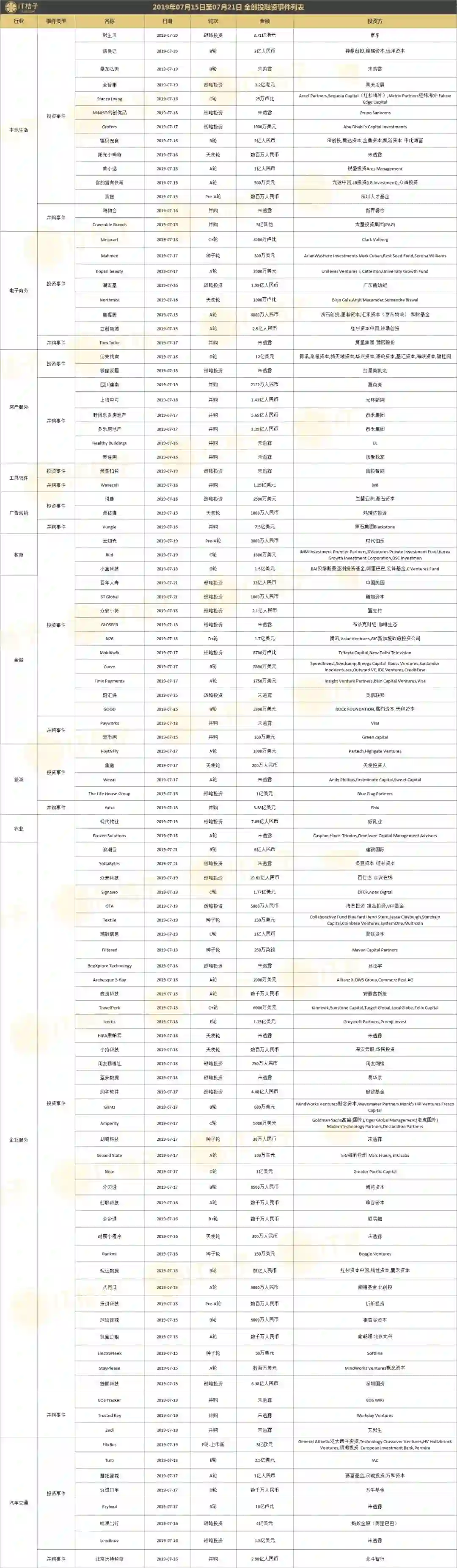 上周全部投融资事件列表: