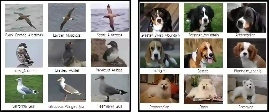 虽然精细化物体分类拥有广阔的应用前景,但同时也面临着艰巨的挑战。如下图所示,每一行的三种动物都属于不同种类,但其视觉差异却非常微小。要分辨他们,对于普通人来说绝非易事。