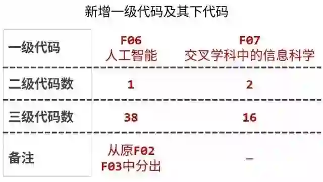 信息科学部增加了人工智能领域申请代码F06和交叉学科领域申请代码F07,并对其他申请代码做了相应调整。