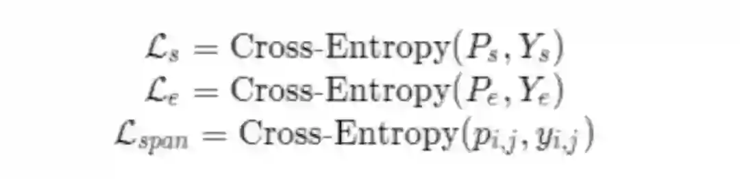 在训练的时候,我们有三个损失,分别是开始位置损失、结束位置损失和实体损失,分别定义如下: