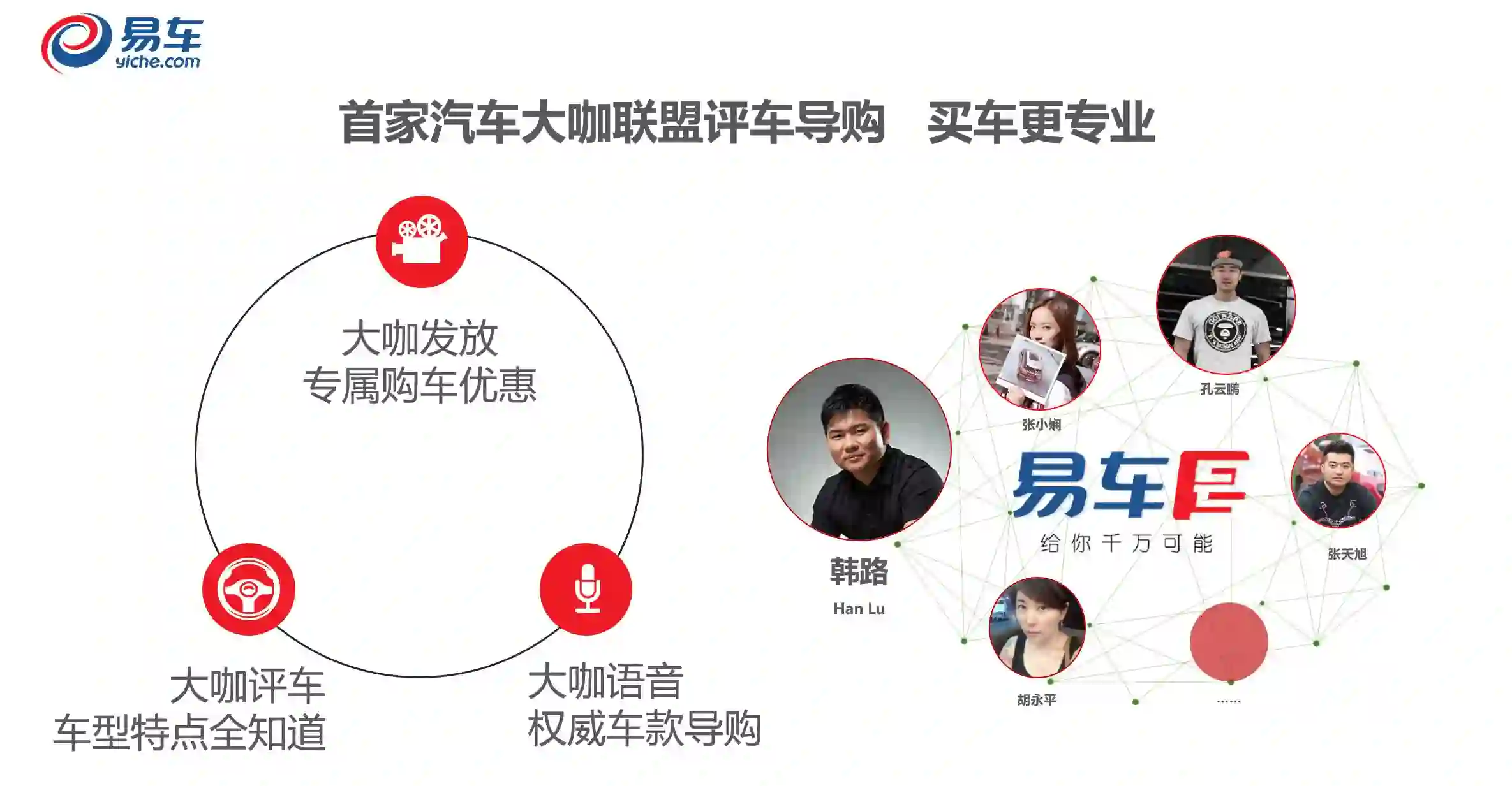 而由“老司机”App联合创始人韩路、知名汽车节目《杀手公开课》创始人孔云鹏,以及易车内部IP张天旭领衔的 “汽车大咖联盟”,也为用户提供了更加个性化的导购、评车服务,满足了年轻用户注重听取意见领袖和专业人士意见进行购车决策的需求。