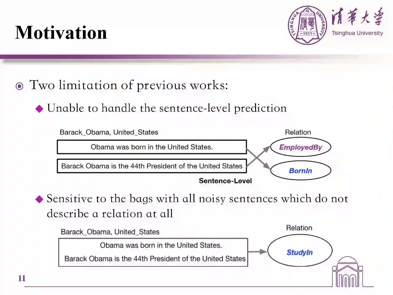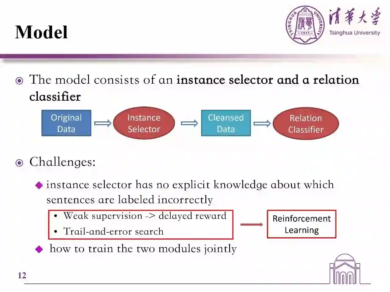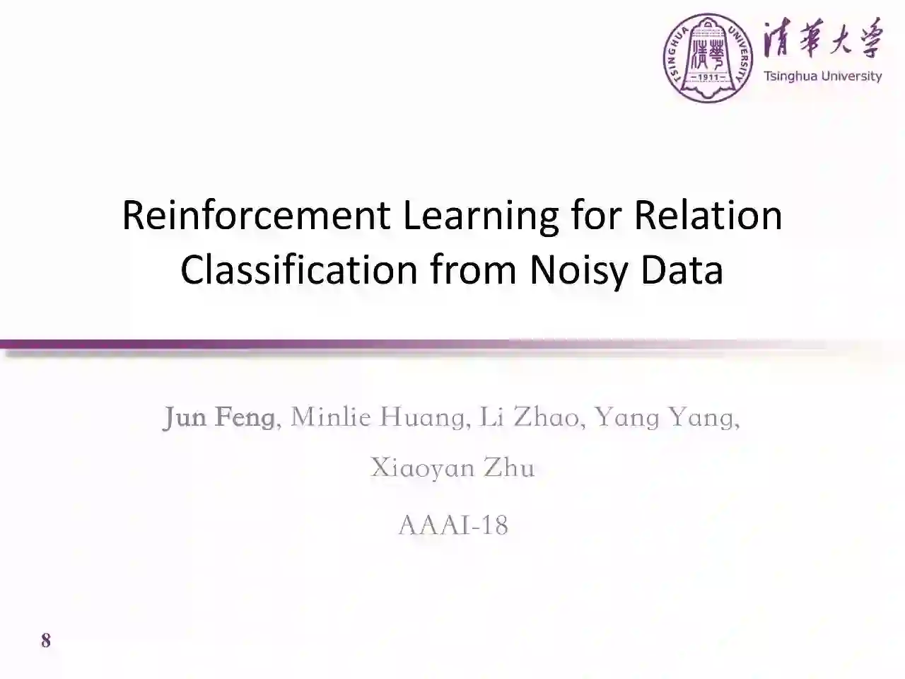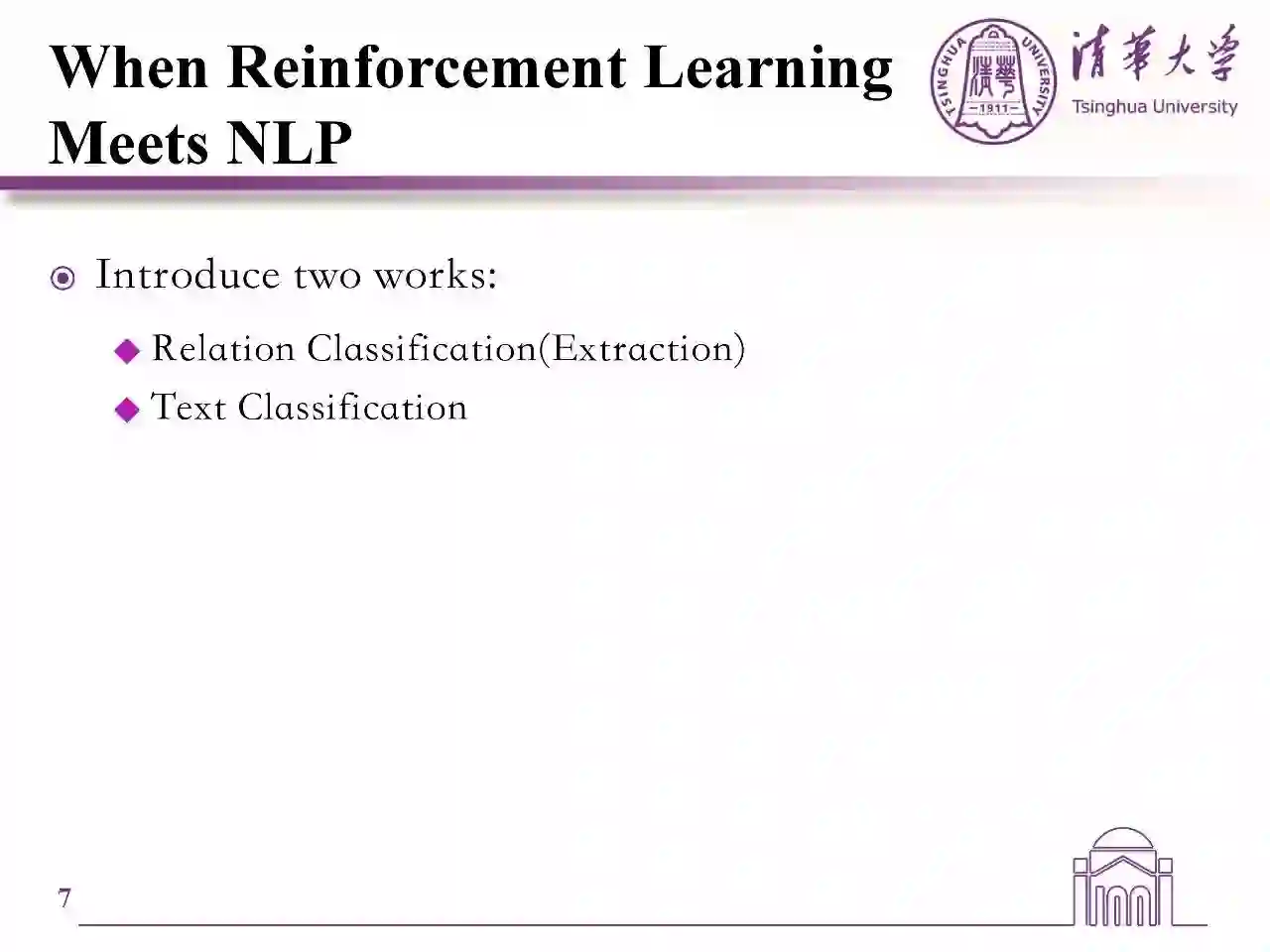 在关系抽取任务中,尝试利用强化学习,解决远程监督方法自动生成的训练数据中的噪音问题。在文本分类任务中,利用强化学习得到更好的句子的结构化表示,并利用该表示得到了更好的文本分类效果。本次分享的两个工作均发表于 AAAI2018。