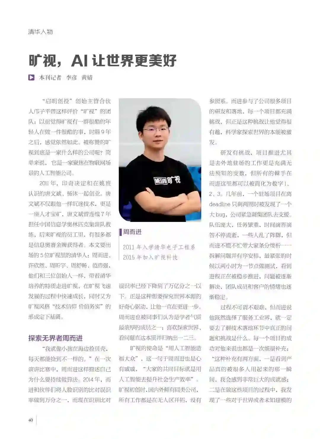 周而进,2011年入学清华电子工程系,2015年加入旷视科技