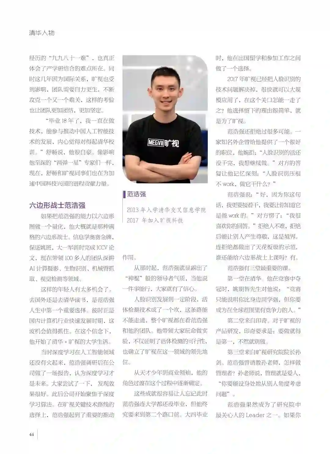 这样的年轻人有太多机会了。去国外还是去清华读书,是范浩强人生中第一个重要选择。彼时正是国内计算机行业快速发展时期,这波机会值得抓住。在这个信念下,他开始了清华+旷视的大学生活。