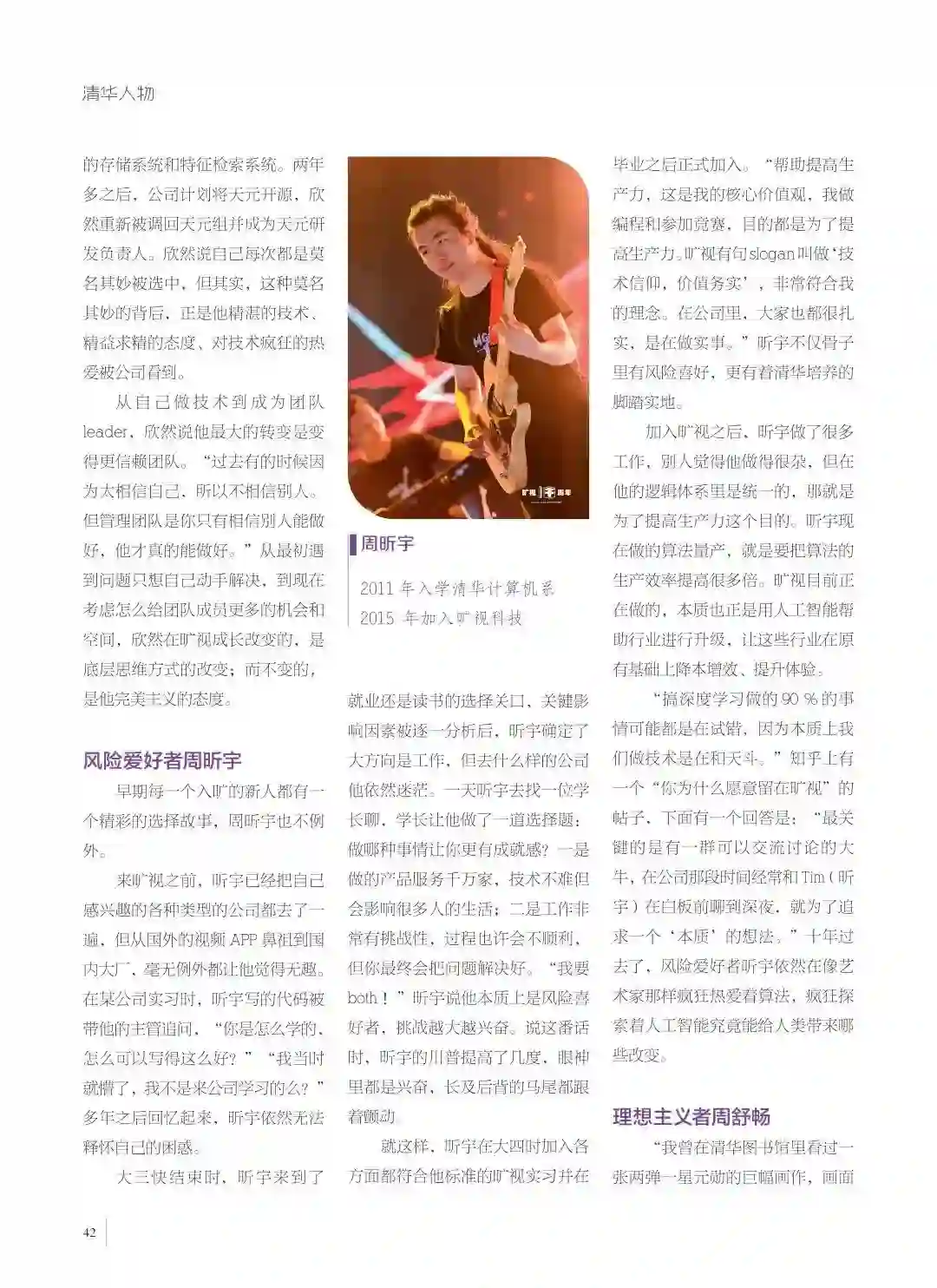 周舒畅,2000年入学清华电子工程系,2014年加入旷视科技