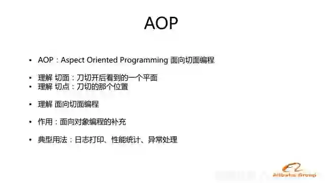 AOP,Aspect Oriented Programming,也就是面向切面编程。在AOP的概念里需要理解两个小的概念:切面和切点。